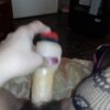 Descrizione: Prima cerco di mettermi il vestitino, poi vado verso di lui a succhiarglielo.