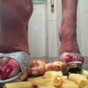 Descrizione: Lo schiavo viene calpestato e masturbato dai piedi della mistress